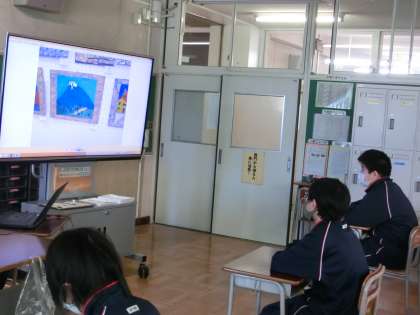 弦中生活1 1月29日(金) 公開日 2021/01/29 更新日 2021/01/29 できごと I組総合的な学習の時間に、連合作品展の作品を写真で見ました。本当は、世田谷美術館に行ってみる予定でしたが、緊急事態宣言の中の校外学習が中止になりました。 最初は、I組の作品を中心に、武内先生の解説を交えながら、楽しみました。 いいね(0)