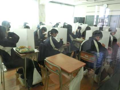 1年生が準備が終わらない中で、さずが3年生は、静かに食べ始めていました。黙々と…。
