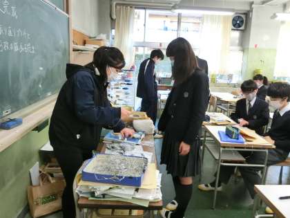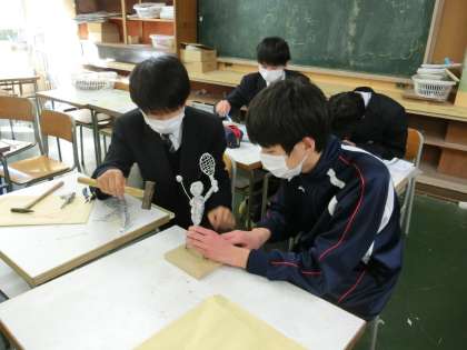 3年生美術室での美術の事業です。針金でつくった人物像がどんどんできてきました。