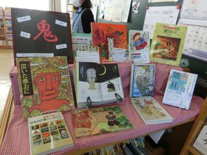 図書室で見つけた「節分」「バレンタイン」コーナー。