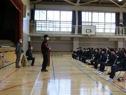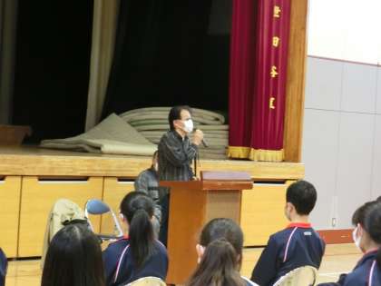 2年福祉体験学習1 2月15日(月) 公開日 2021/02/16 更新日 2021/02/16 できごと 2年生の総合的な学習の時間で「福祉体験学習」に取り組んでいます。世田谷区視力障害者協会の大竹理事長を講師にお迎えし、講話とアイマスク・白杖体験をしました。 いいね(0)