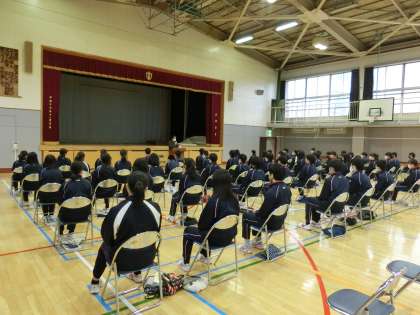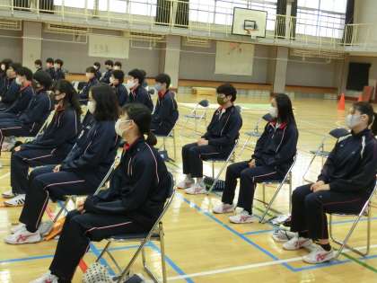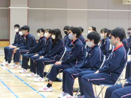 1・2時間目は、A組D組が取り組みました。大竹さんのお話は、とても分かりやすく、目が不自由な方に出会った時に、どのように接すればよいのかなどを教えていただきました。