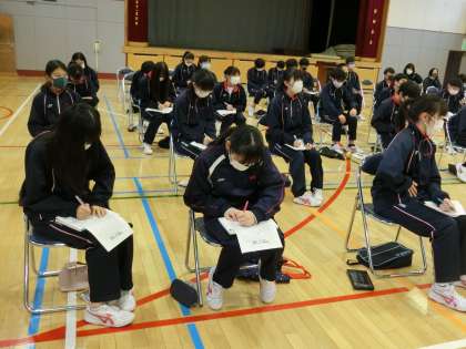 2年福祉体験学習10 2月15日(月) 公開日 2021/02/16 更新日 2021/02/16 できごと 体験が終わって、ワークシートに体験を通して学んだことや分かったことをまとめました。最後に、生徒全員で感謝の気持ちをとお礼を言いました。今回ご協力をいただきた世田谷区視力障害者福祉協議会の講師の先生、貴重なお話と体験をありがとうございました。また、街でお会いした時は、声をかけさせていただきます。 大雨の中でしたが、本当にありがとうございました。 いいね(0)