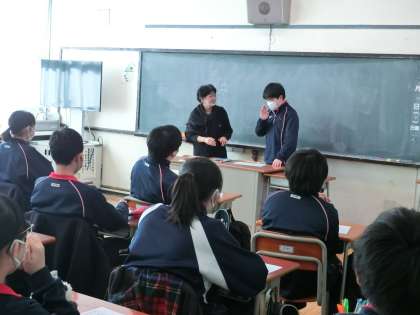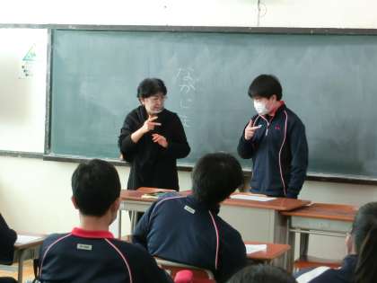 2年福祉体験学習—手話ー2 2月17日(水) 公開日 2021/02/18 更新日 2021/02/18 できごと 指文字を習いました。自分の名前を指文字でやってみました。代表2人が、先生に自分の名前を指文字で伝えることができました。 いいね(0)
