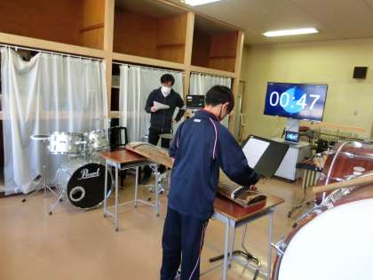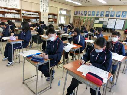 音楽のお琴のテスト。待っている人も真剣に自習中。
