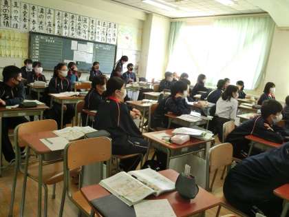 3年生の教室から、1年生の教室へ。みんな頑張っていますか。