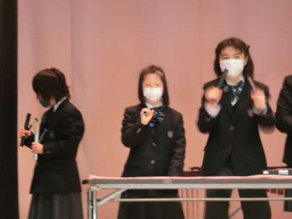I組は1時間目音楽の授業は、体育館で学芸発表会の練習です。