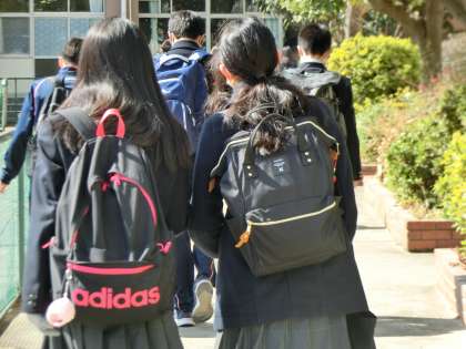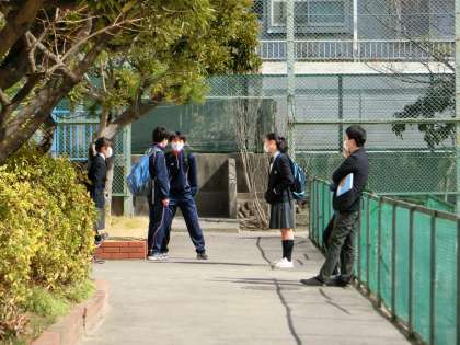 帰り際に、昇降口の先生たちと談笑する子どもたち。心温まる光景です。
