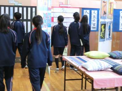 各クラス3会場に分かれて、順番に鑑賞していました。