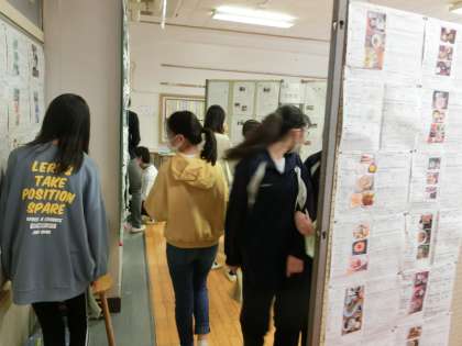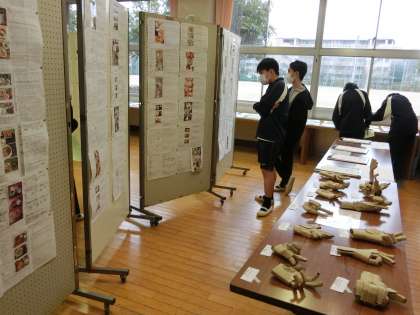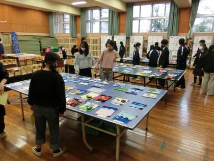 3年生の展示会場でも、思い思いにお互いの作品を見合っていました。