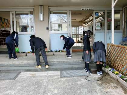 美化委員会の活動2 3月9日(火) 公開日 2021/03/09 更新日 2021/03/09 できごと 3年生の植え付けが終わり、正面玄関に飾って水をたっぷりとあげました。花もとても嬉しそうでした。 いいね(0)