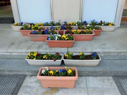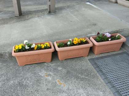 美化委員が植えてくれたパンジーも玄関できれいにさいていました。