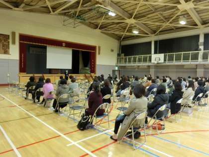 3年生は体育館で学年。1・2年生はクラスごとでの保護者会となりました。