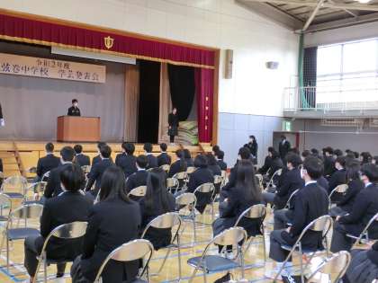 3年卒業式練習1 3月16日(火) 公開日 2021/03/16 更新日 2021/03/16 できごと 卒業証書授与の練習は、C組とI組が行いました。明日の予行練習に向けて、準備はOKです。 いいね(0)