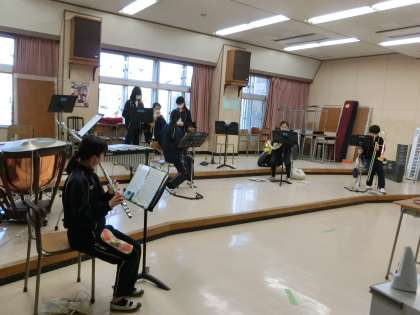 卓球部、吹奏楽部活動中。