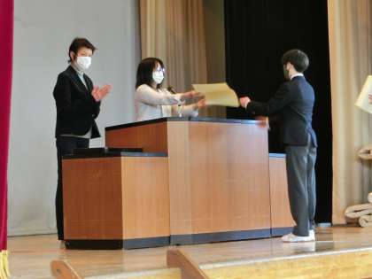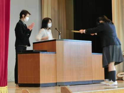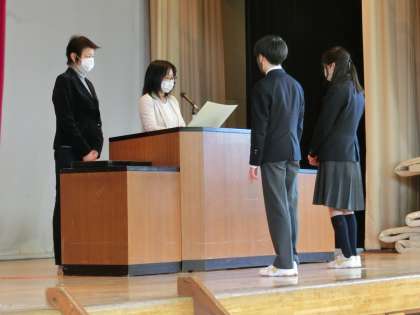 次に、産業振興優良生徒ABC組より2名、I組から1名が選ばれました。