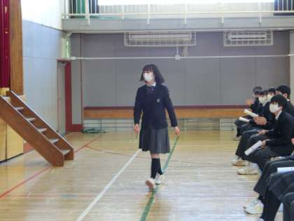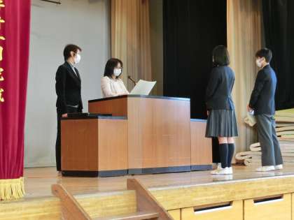 体育優良生徒の表彰です。男子1名、女子1名です。
