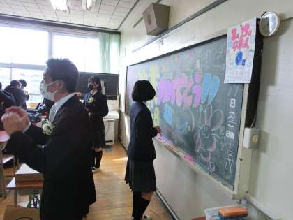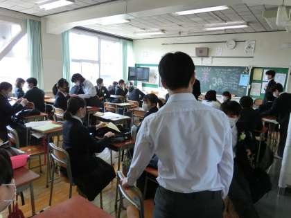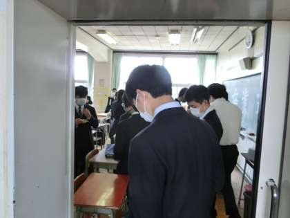 卒業式当日です。生徒が登校してきました。