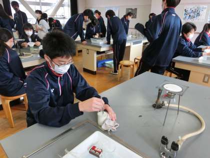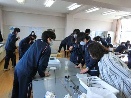 2年生の理科の授業でプラスチックを製作していました。