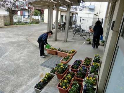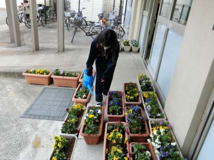 美化委員もプランターの水やりをしてくれています。元気に成長しています。