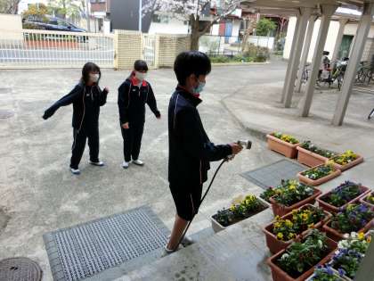 校庭で、子どもたちも遊んでいます。3年生がいないので、ちょっと寂しいですね。