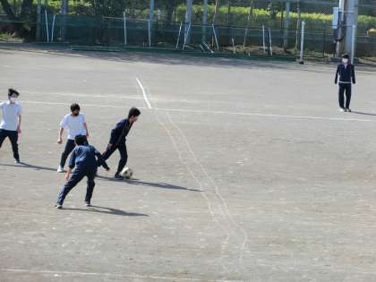球技大会。校庭では、サッカーの開会式。そして試合がはじまりました。
