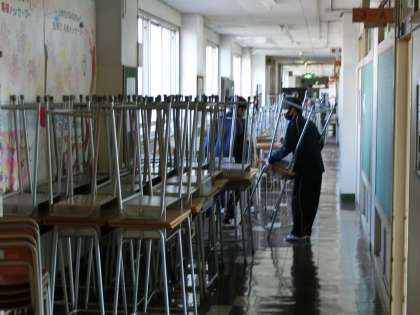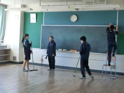 一生懸命掃除に取り組む弦中生です。