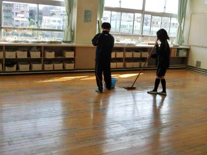 3学期大掃除17 3月24日(水) 公開日 2021/03/25 更新日 2021/03/25 できごと 美術室も!!先生が見ていない場所でも一生懸命お掃除をする姿が見られました。かっこいいです。 最後に美化委員が教室のワックスがけをして終わります。 いいね(0)