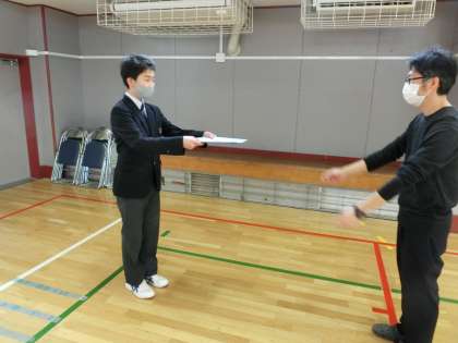 終業式前のひと時です。終了書の受け取り方の練習など。