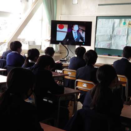 令和2年度最終日7 3月25日(木) 公開日 2021/03/26 更新日 2021/03/26 できごと 最後は生活指導主任の坂本先生からのお話です。体育館にいる2年生も、教室にいる1年生もしっかりと話を聞きました。 いいね(0)