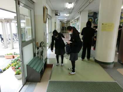 「何組だった?」「何組だよ。一緒!!」などなど、会話が。