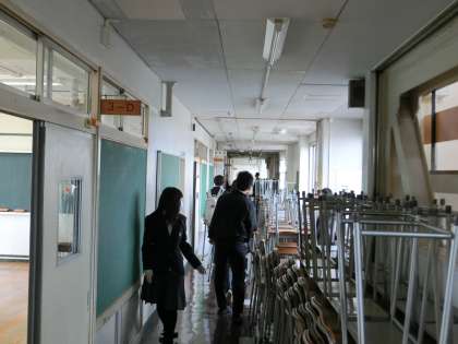 まずは、みんなで、新しいクラスに椅子と机の搬入作業。
