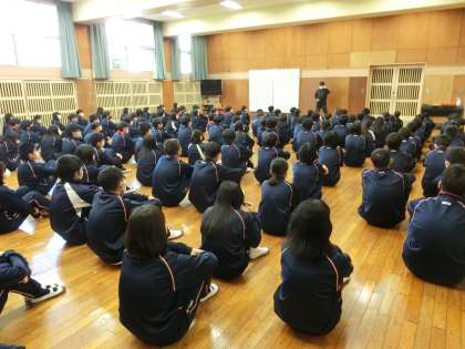 3年生学年集会1 4月8日(木) 公開日 2021/04/08 更新日 2021/04/08 できごと 2年学年集会は、身体計測で体育館が使用中だったので、格技室で。1年生の時より大きく成長したので、格技室が小さくなってしまいました。換気をしっかりとしてもらって短時間での集会となりました。 いいね(0)