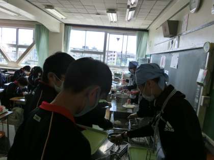 楽しい給食の時間がはじまりました。今日の給食は「麻婆豆腐丼」です。