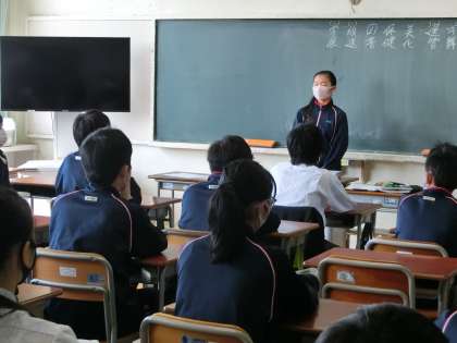 委員会を決めています。クラス全員の前で緊張するけど、頑張ります。