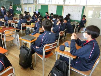 委員会・係決め5 4月9日(金) 公開日 2021/04/09 更新日 2021/04/09 校長室より 3年A組丸山学級。最後の美化委員会が決まって大きな拍手が起こりました。第1回目の専門委員会は15日(木)にあります。やる気満々の人たちが集まっているので、弦巻中学校のために、頑張ってください。 いいね(0)