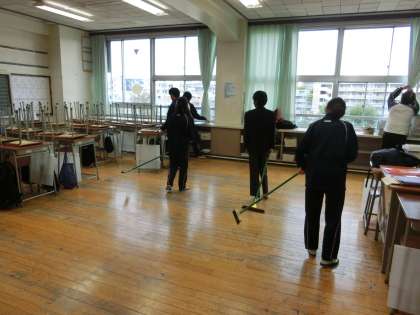 放課後は、各教室の清掃活動です。
