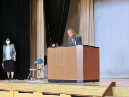 開校記念行事「ゆがけ」講演会2 4月10日(土) 公開日 2021/04/10 更新日 2021/04/10 校長室より まず、校長より、「弽」の意味とご講演いただく野田会長を紹介しました。 いいね(0)