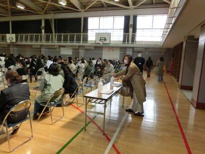 2・3年生の保護者の方は、最初体育館で職員紹介を行いました。1年生は、教室で係決めを行いました。