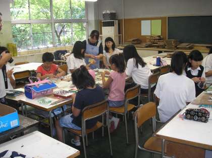 中学生たちは、お兄さん、お姉さんとなって、ていねいに教えています。