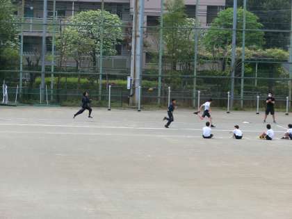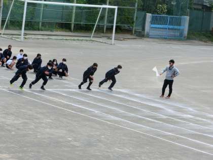 体育では、50mのタイムを計っていました。みん一生懸命走っていました。
