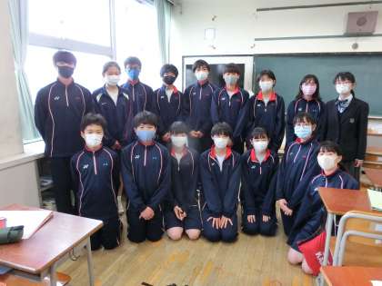 生徒評議会3 4月15日(木) 公開日 2021/04/15 更新日 2021/04/15 生徒会 最後に顧問の丸山先生から、この評議会のメンバーが学校の中心となって責任ある仕事を担っているので、「あいさつをする」「仕事をしっかりする」など、率先してやっていくことで、弦巻中がもっともっと良くなると思うので頑張ってほしいと励ましの言葉がありました。よろしくお願いします。校長先生も応援します。頑張ってください。 最後に、委員長と生徒会役員で「はい、ポーズ!!」 いいね(0)