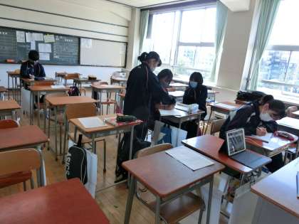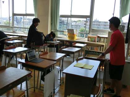 手を洗って教室に向かいます。教室では、担任の先生との朝のひと時。