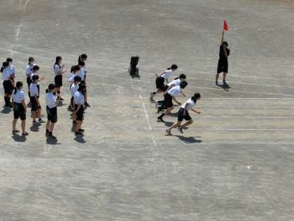 校庭では、夏日の中体育を頑張っていました。体育大会に向けて、体力づくりです。