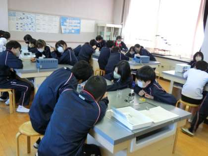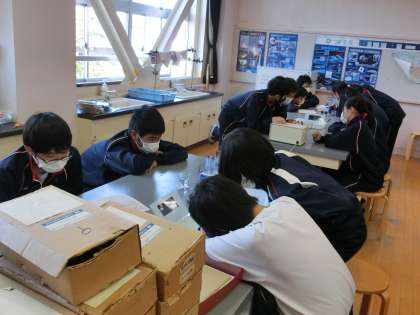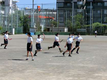理科室では、実験を。校庭ではリレーのバトンパスの練習を!!
