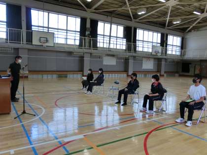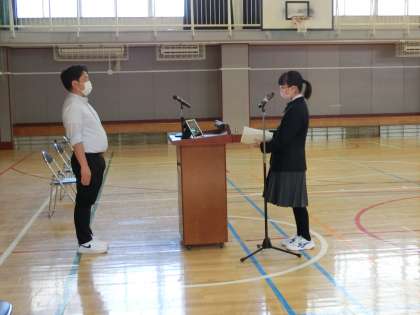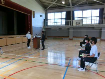 30日の離任式に向けて、担当の生徒がリハーサルを行いました。