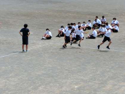 体育大会の全員リレーの練習です。バトンパスが上手になっています。