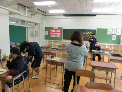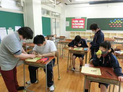 I組作業の授業です。クラフトバンドでの作品作り。昨年は可愛い金魚を作りました。今年は何ができるのでしょうか。