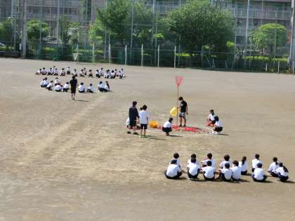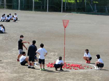 体育大会の学年種目。玉入れ!!松丘小と弦巻小から玉入れの道具を借りてきました。