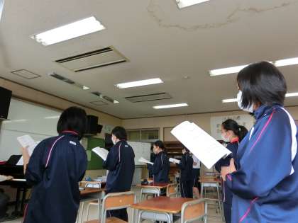 音楽室から美しい歌声が2年生の課題曲「時の旅人」でした。